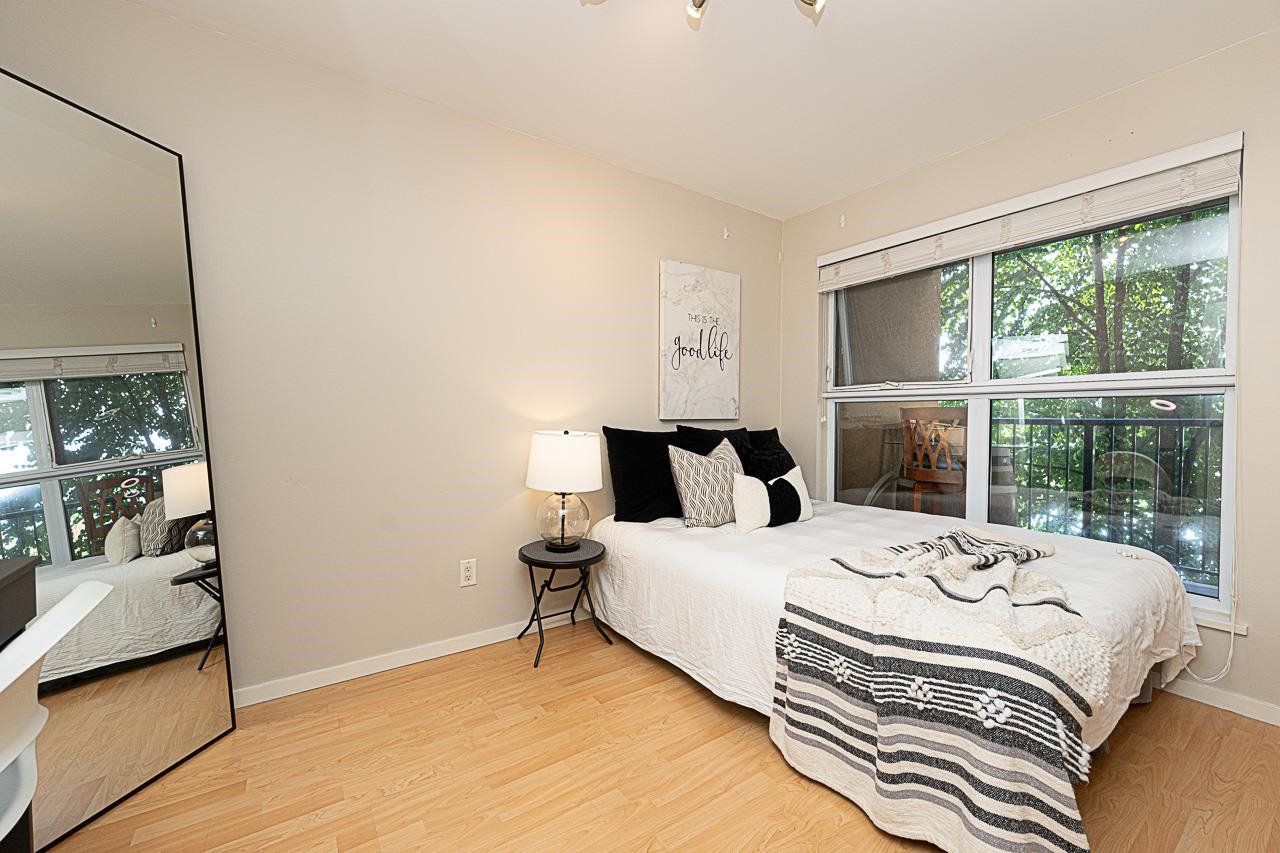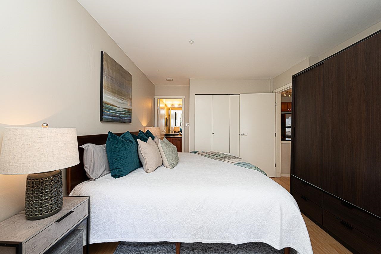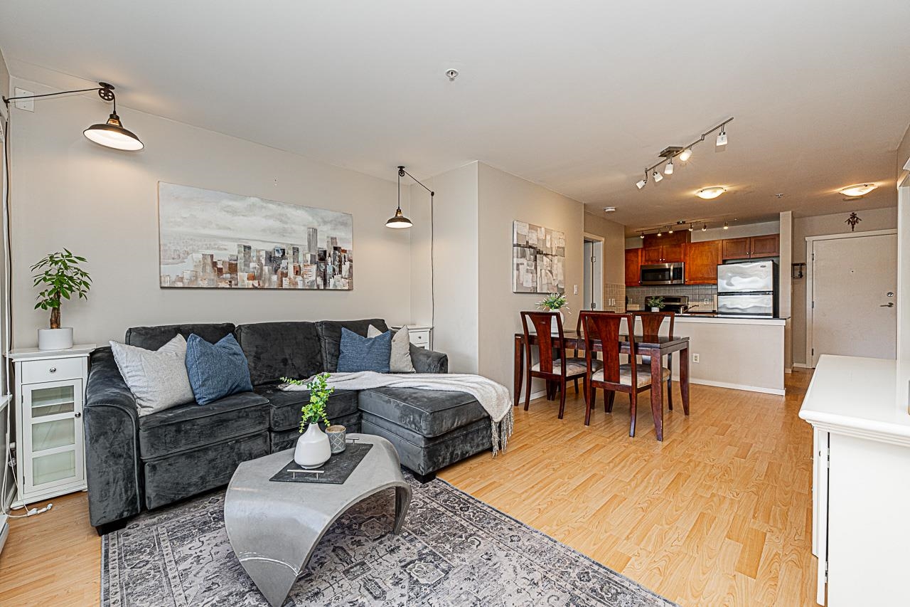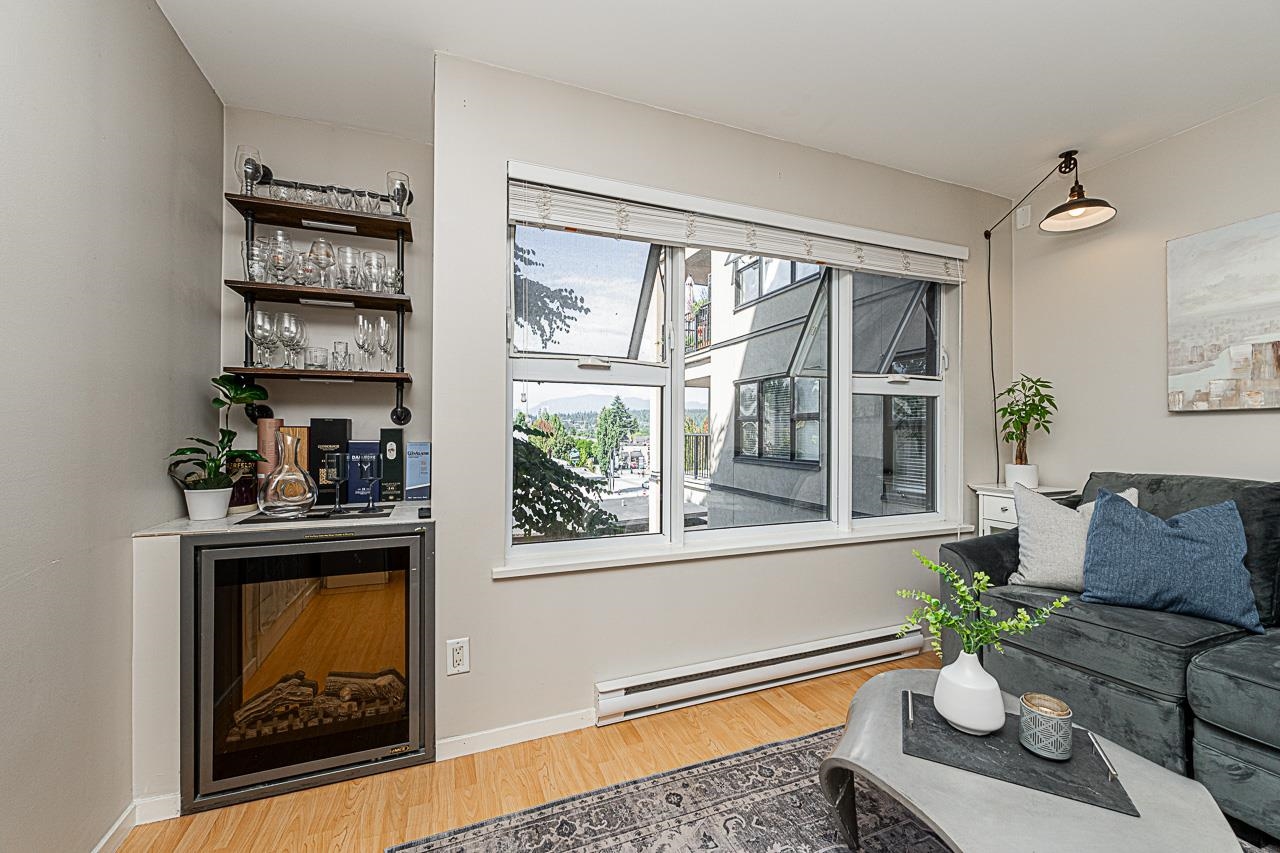 Welcome to San Marino, where comfort and convenience come together in the heart of historic Sapperton! This bright and inviting 2 bedroom, 2 bathroom home offers a smart split bedroom layout, ideal for privacy. The oversized main bedroom features a full ensuite, while the open concept kitchen shines with quartz countertops, stainless steel appliances, and a stylish tile backsplash. Relax by the electric fireplace or step onto your spacious balcony to take in mountain and city views. With only one shared wall, enjoy added peace and quiet. Just steps to SkyTrain, parks, shops, dining, and yes, there is a Starbucks right in the building. Pet friendly (with restrictions) and includes 1 parking stall plus a storage locker. This is the one you have been waiting for!