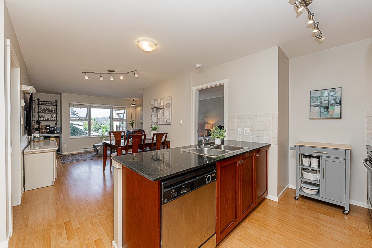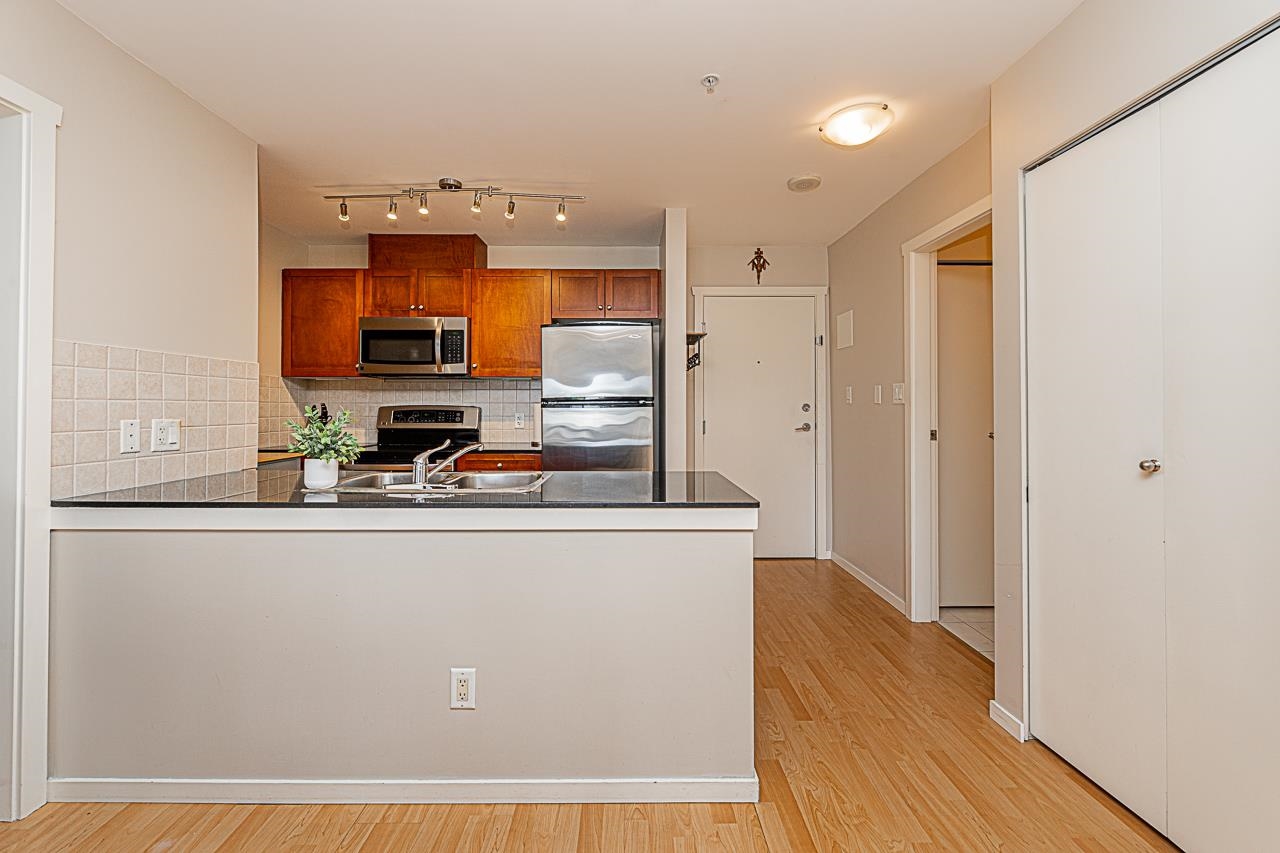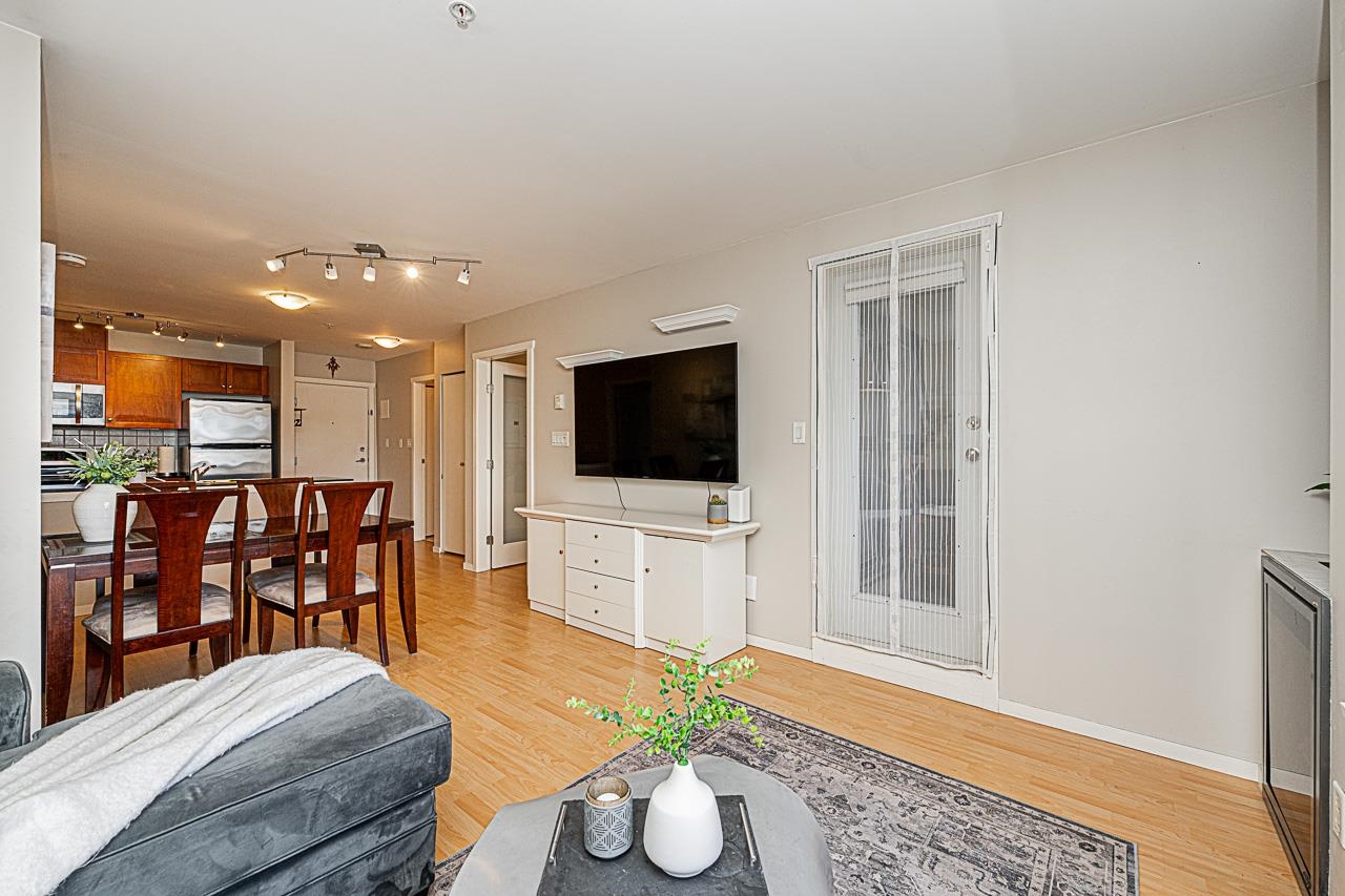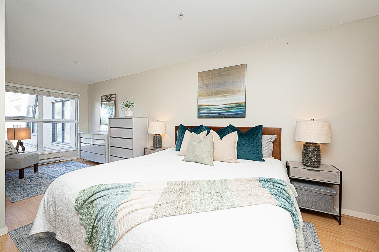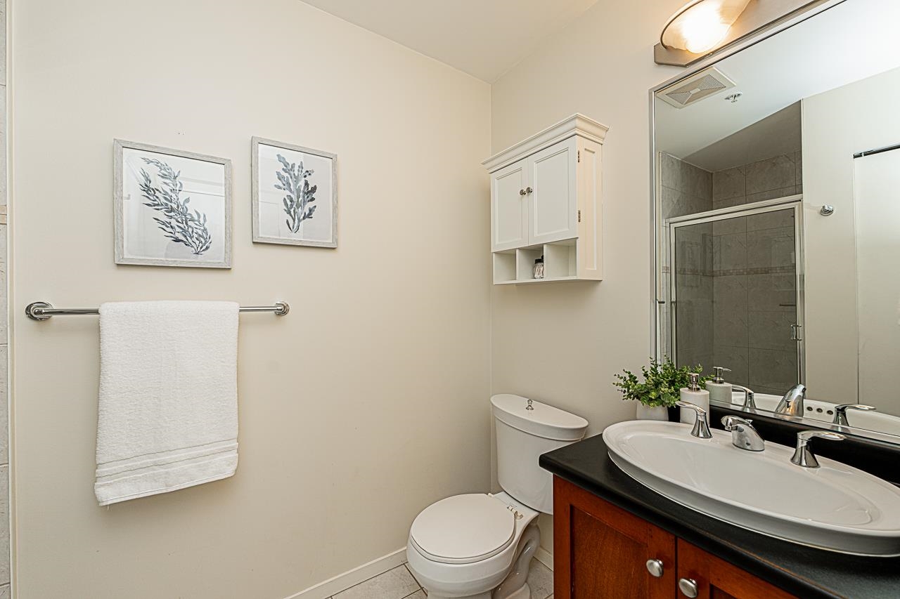 Welcome to San Marino, where comfort and convenience come together in the heart of historic Sapperton! This bright and inviting 2 bedroom, 2 bathroom home offers a smart split bedroom layout, ideal for privacy. The oversized main bedroom features a full ensuite, while the open concept kitchen shines with quartz countertops, stainless steel appliances, and a stylish tile backsplash. Relax by the electric fireplace or step onto your spacious balcony to take in mountain and city views. With only one shared wall, enjoy added peace and quiet. Just steps to SkyTrain, parks, shops, dining, and yes, there is a Starbucks right in the building. Pet friendly (with restrictions) and includes 1 parking stall plus a storage locker. This is the one you have been waiting for!