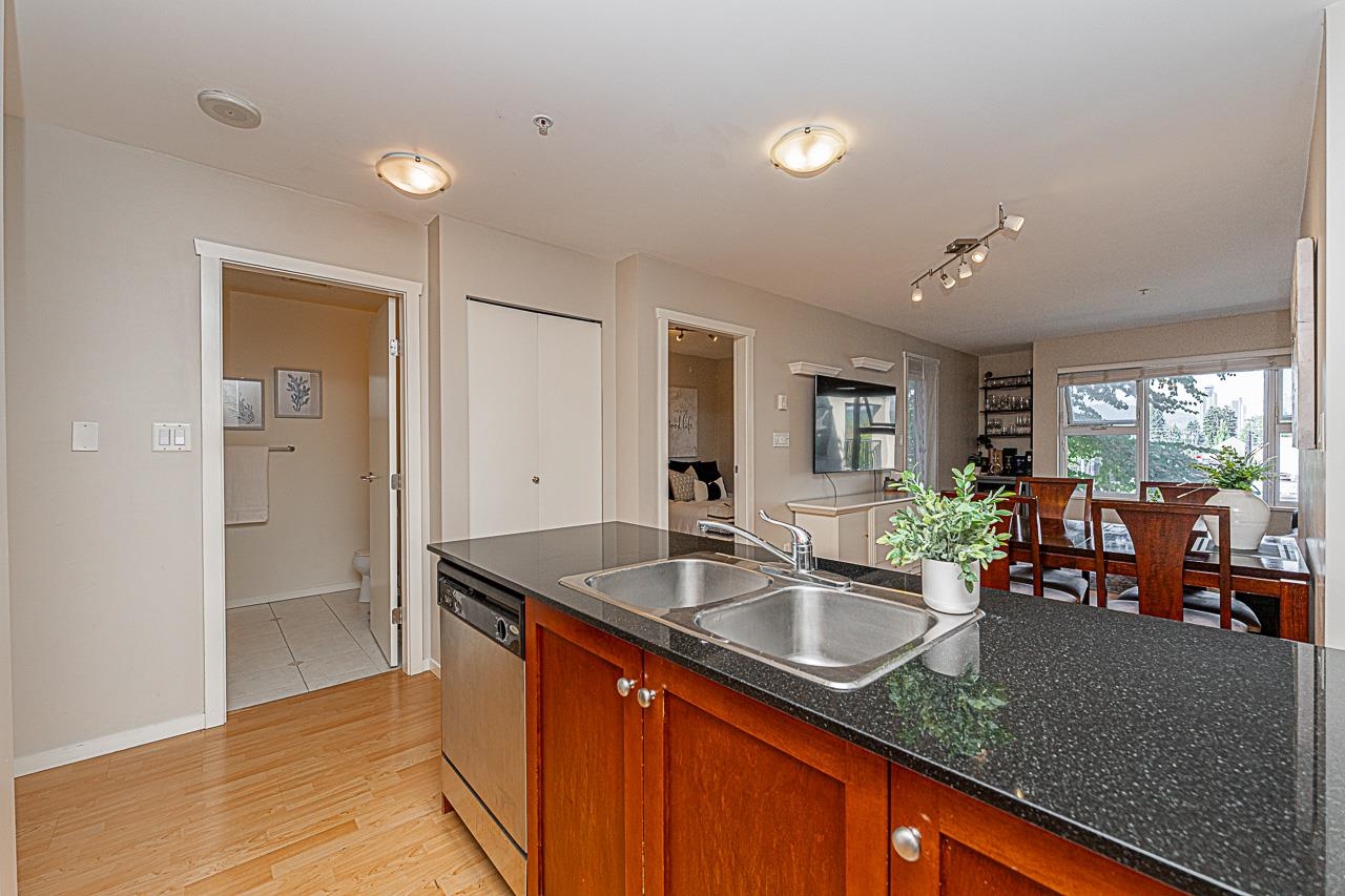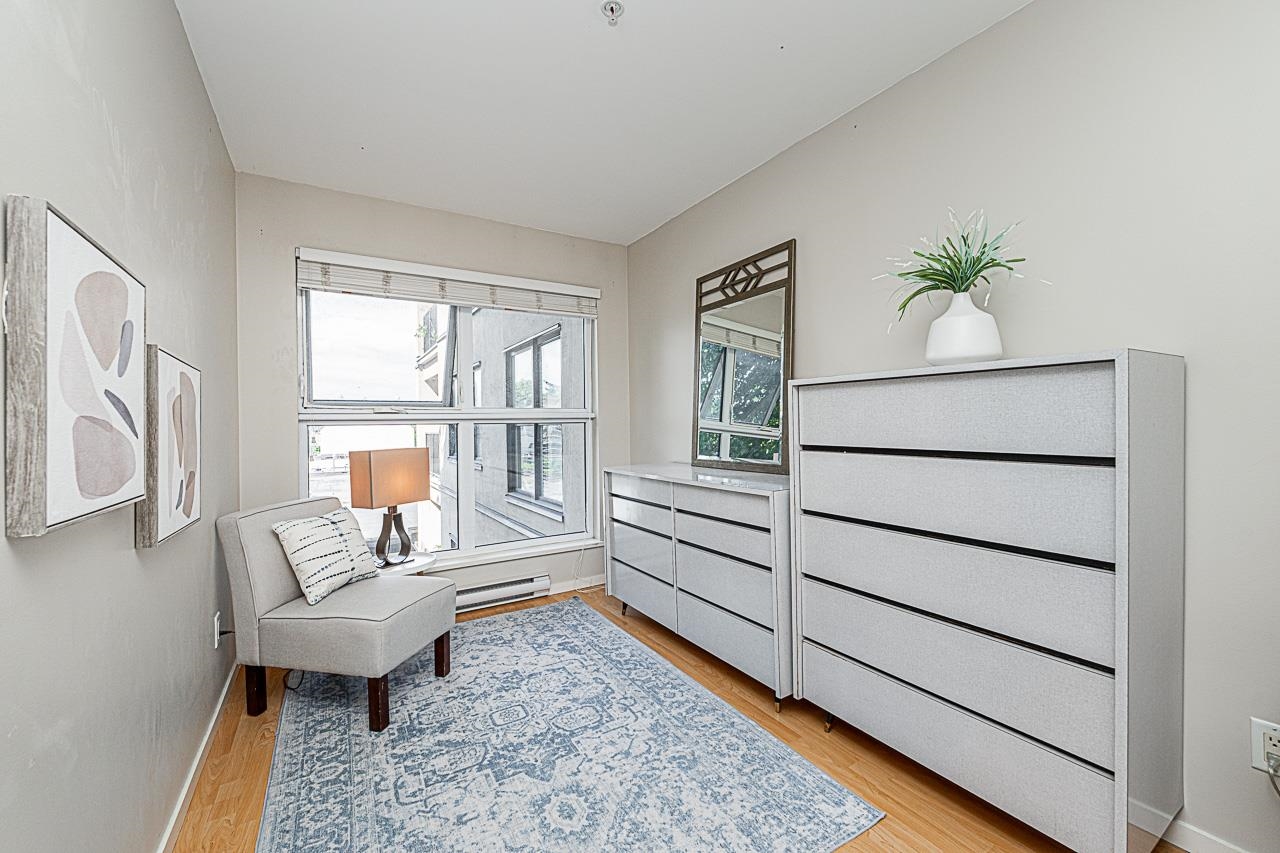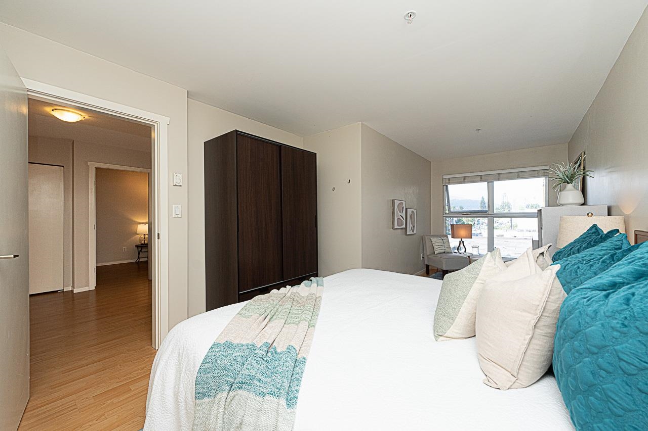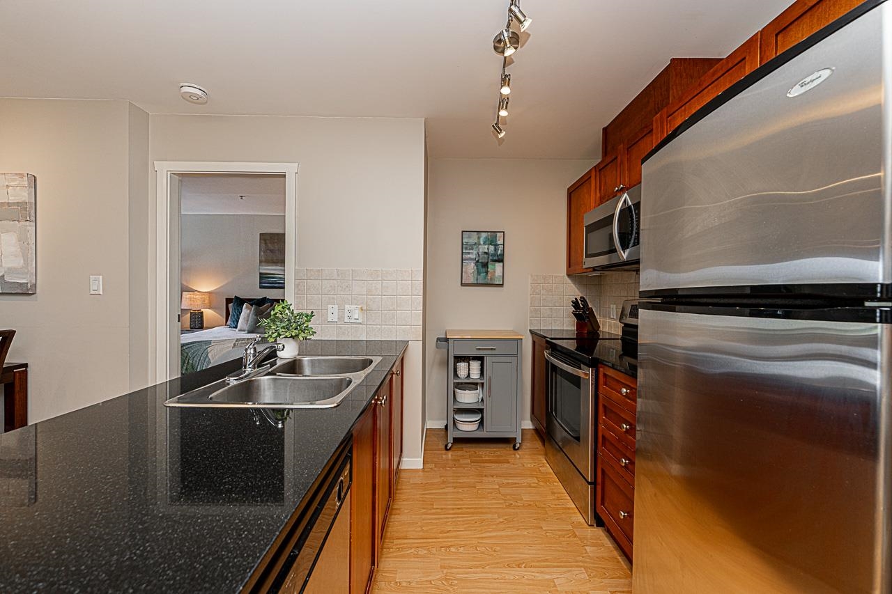Welcome to San Marino, where comfort and convenience come together in the heart of historic Sapperton! This bright and inviting 2 bedroom, 2 bathroom home offers a smart split bedroom layout, ideal for privacy. The oversized main bedroom features a full ensuite, while the open concept kitchen shines with quartz countertops, stainless steel appliances, and a stylish tile backsplash. Relax by the electric fireplace or step onto your spacious balcony to take in mountain and city views. With only one shared wall, enjoy added peace and quiet. Just steps to SkyTrain, parks, shops, dining, and yes, there is a Starbucks right in the building. Pet friendly (with restrictions) and includes 1 parking stall plus a storage locker. This is the one you have been waiting for!